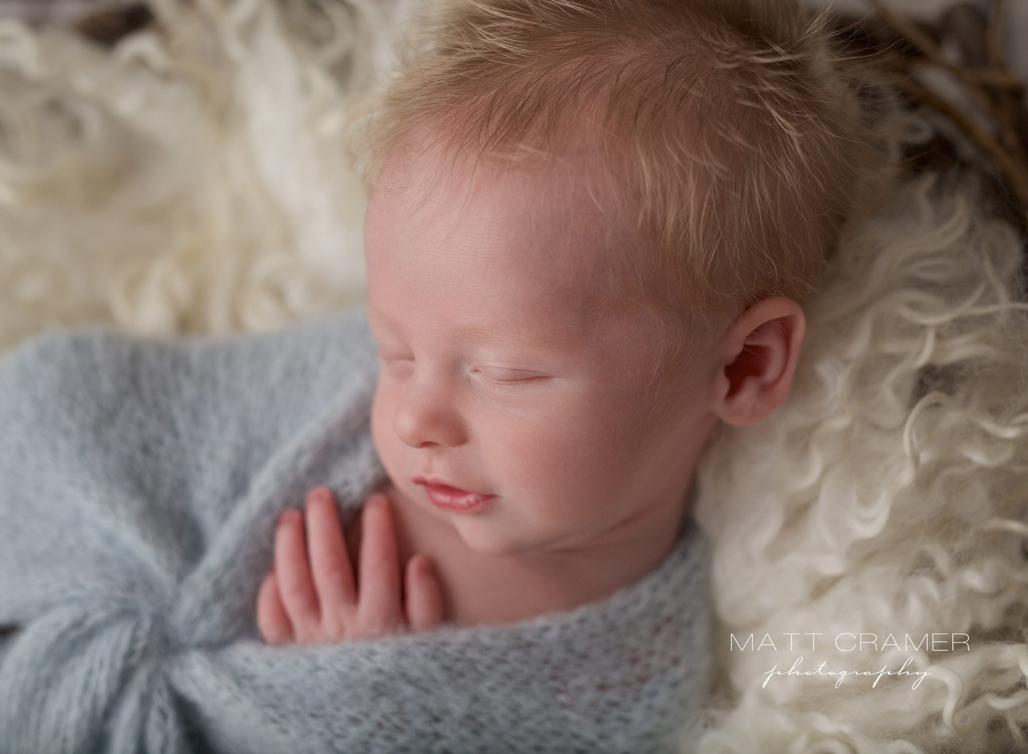 Switching to prop shots, we started with this light blue wrap and cream texture. Such a light and airy color combination! His little peaceful smirk is just perfect.