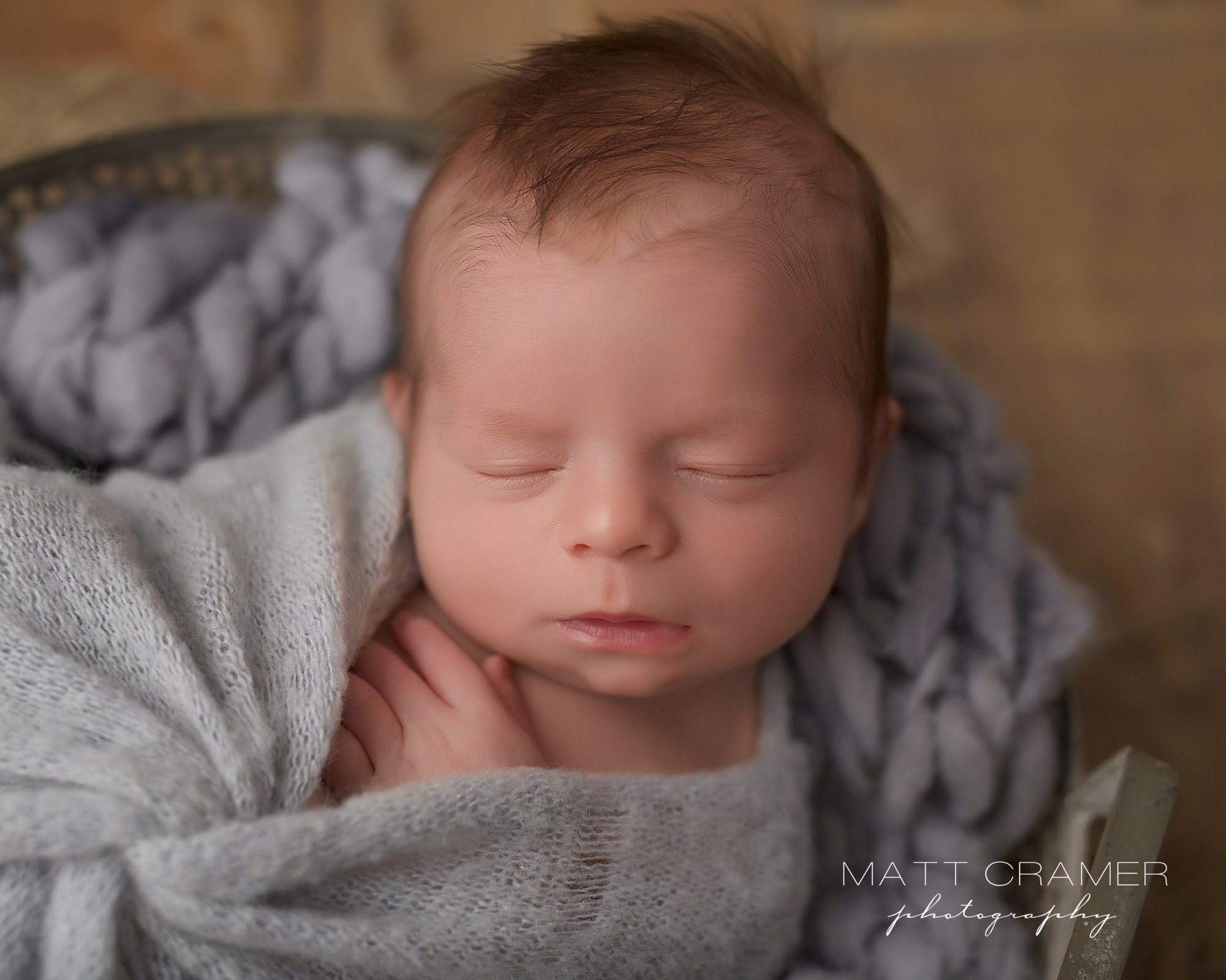 I’m just going to go on record and let everyone know that adorable Baby M completely STOLE my heart! When mom emailed me his birth stats before his newborn session, and included, “Character: Charming as hell”, she wasn’t even kidding!  This little guy smirked and made the sweetest baby coo’s as I was posing him, and Matt was able to capture one of those famous smirks, too!  In newborn photography, that’s like catching a unicorn people! 🙂 I loved all the different set ups we did with this handsome guy, from a clean white fabric backdrop for his “bare baby” shots to a mix of greys and blues for his prop shots.